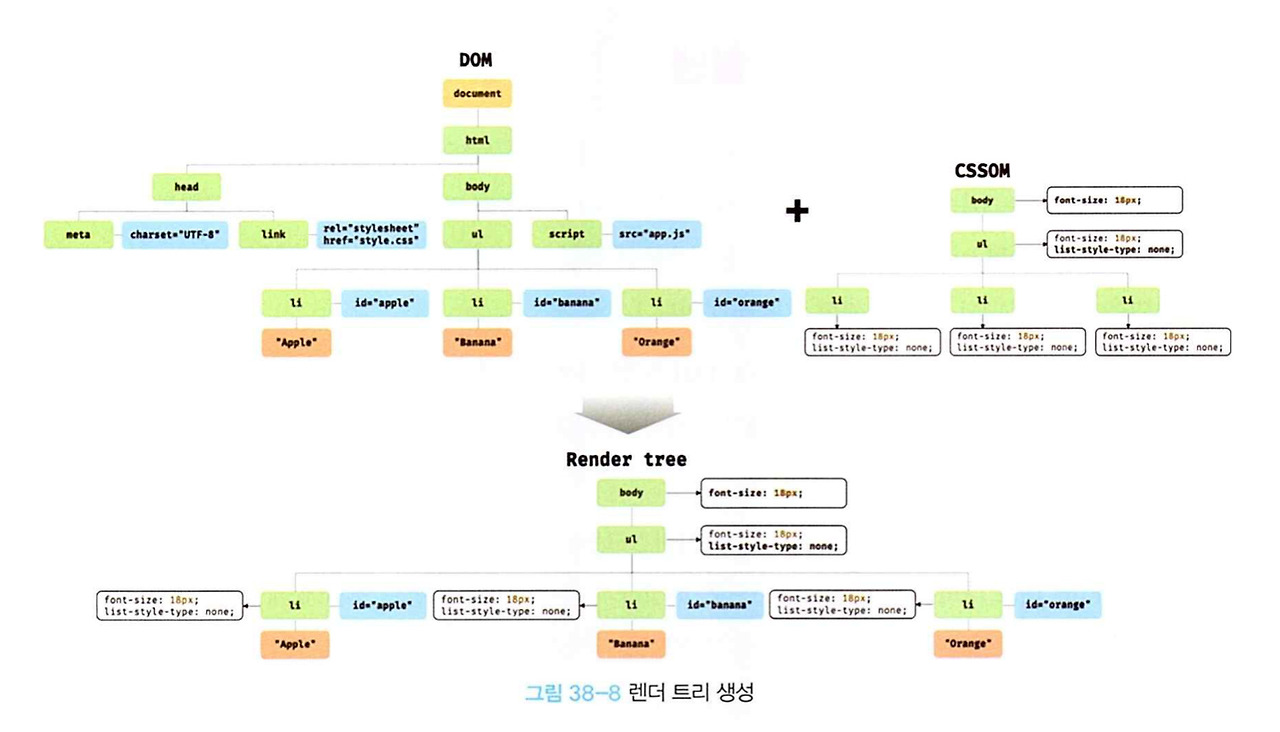 HTML 요소는 렌더링 엔진에 의해 파싱되어 DOM을 구성하는 요소 노드 객체로 변환된다. 이때 HTML 요소의 어트리뷰트는 어트리뷰트 노드로, HTML 요소의 텍스트 콘텐츠는 텍스트 노드로 변환된다.